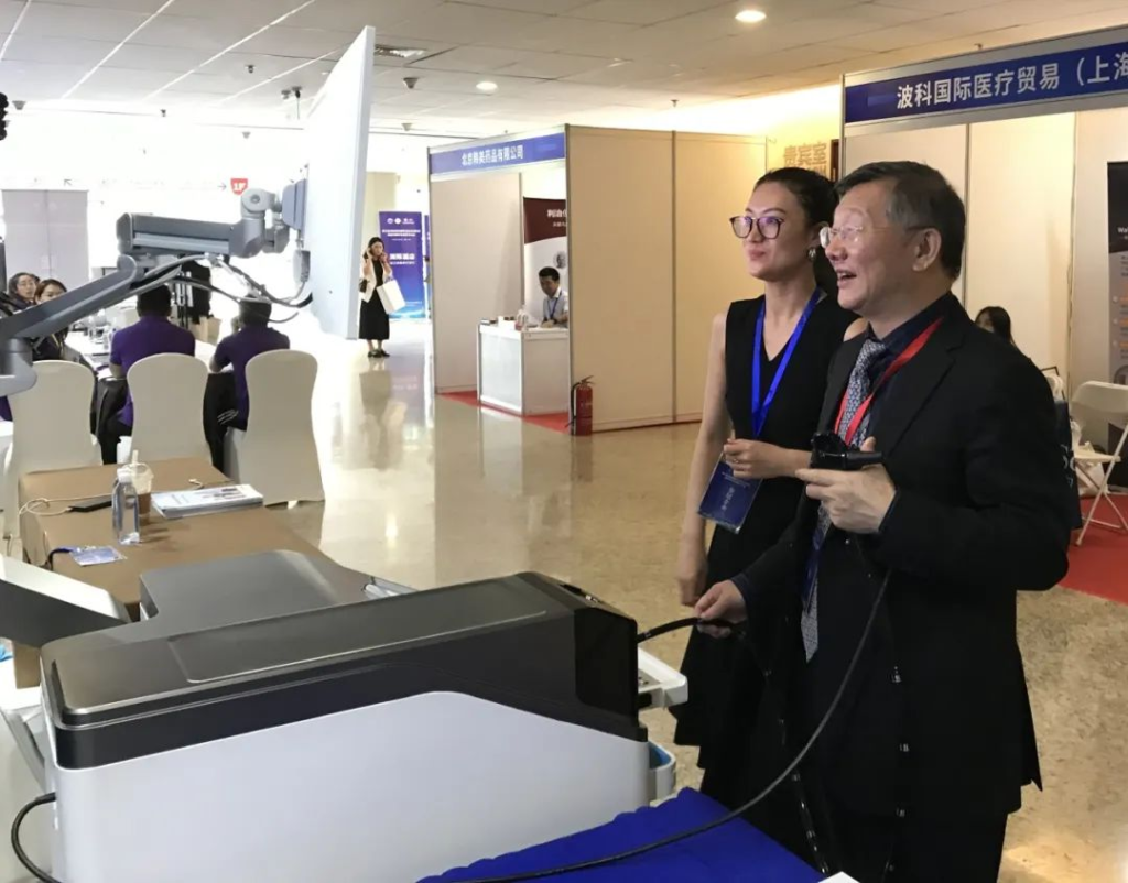 展会现场,本次会议主席姜泊教授莅临IHS智触展位,现场体验“依多训内镜手术教培机器人(导航版)”后给予认可,并提出了宝贵的意见。