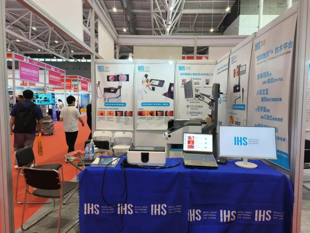 本次展会,IHS智触展出了两款具有里程碑意义的产品,分别是“依多训内镜手术教培机器人(导航版)”和“依多训消化内镜手术教培机器人(便携版)”,展示了IHS智触将智能触觉技术应用在模拟医学领域的产品,并实现商业化销售。